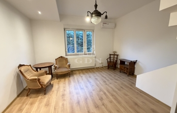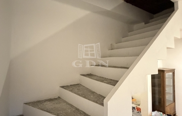 A földszinten egy tágas előszoba-közlekedőbe léphetünk be, innen nyílik egy világos nappali amelyben egy frissen kialakított modern lépcső vezet fel a tetőtérbe.