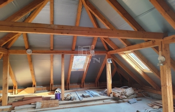 A tetőtere jelenleg egy légtér amely szintén bruttó 81 m² alapterülettel rendelkezik, tehát ennek a résznek a beépítésével a ház teljes alapterülete a földszint + tetőtérrel 160 m².
