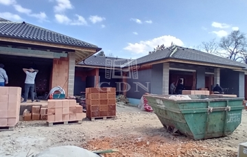 Antracit színű cserépfedés, középszürke ereszcsatorna