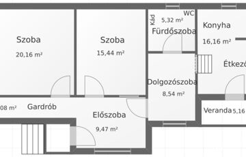 Ez a bájos parasztház 80 m²-es lakótérrel rendelkezik, amely két kényelmes szobából, egy tágas előszobából, egy dolgozószobából, egy praktikus fürdőszobából és egy konyhából áll. Az előszobából nyílnak a szobák közvetlenül, valamint egy 5 m²-es gardrób helyiség is. A ház 10 éve teljes felújításon esett át, a víz- és villanyvezetékek ki lettek cserélve. Azóta kisebb karbantartási munkálatok voltak. Az előszoba és a konyha új nyílászárókat kapott. Vegyes falazata 50-100 cm magas terméskő alapra épült. Az ingatlan rövid időn belül költözhető, vagy egy esztétikai felújítással, saját ízlésére formálhatja, hogy igazán otthonos legyen.