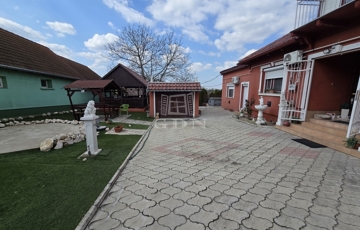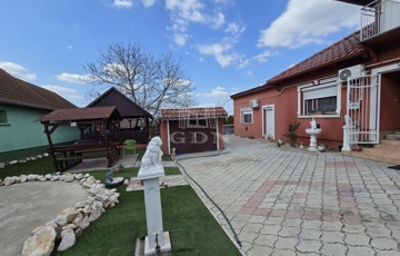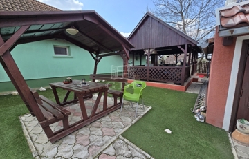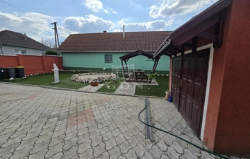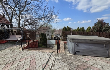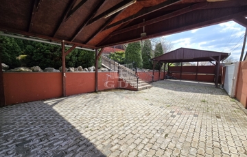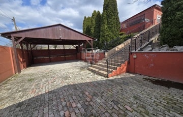 Az alsó udvar szintén részben térkövezett, és külön utcáról is megközelíthető. Itt két fedett gépkocsibeálló került kialakításra, amelyek alatt akár több jármű parkolása is kényelmesen megoldható, így az ingatlan nemcsak nagycsaládosok számára ideális, hanem akár vállalkozási vagy befektetési célra – például szállásadásra – is kiváló lehetőséget kínál.