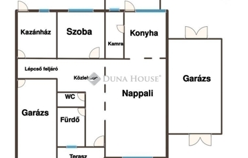 A házzal egybeépített 2 különálló garázsban 1+1 gépjármű elhelyezésére van lehetőség.