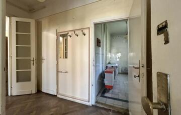 Az ingatlan felújítást igényel, de a falak mozgatásával modern, amerikai konyhás nappali is kialakítható.