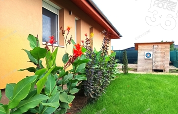Parkosított kert: A ház körüli kert gyönyörűen gondozott, biztosítva a teljes privát szférát, amelyhez egy játszótér is tartozik.