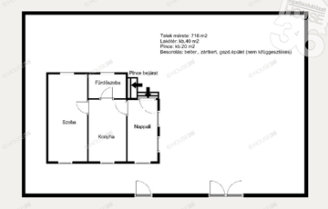 - Lakótér: br.40 m2 : nappali, konyha, fürdőszoba, hálószoba