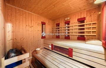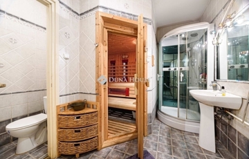 Az alsó szint valódi különlegesség: wellness részleg fin- és infraszaunával, zene szoba, mosókonyha, valamint további kiszolgáló helyiségek szolgálják a kényelmet és a kikapcsolódást. A három szinten végig gondosan megtervezett tárolók és gardróbok diszkréten simulnak bele az enteriőrbe.