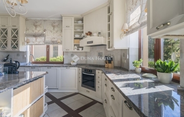 A ház 991 m2-es, déli irányba lankás, kissé lejtő építési telekre épült, beton sávalapra, a főfalak 30-as Porotherm blokktégla-fallal, monolit vasbeton tetőszerkezettel. A teljes dokumentáció, műszaki leírás rendelkezésre áll, a Tulajdonosok saját részre építtették, amely 2001-ben kapott használatbavételi engedélyt. A ház modernizálása azóta 2 ütemben is megvalósult, a teljes konyha, a gépek cseréjével a belső terek, ajtók, magas minőségű faborítására került sor, kifinomult enteriőrökkel, cottage stílusjegyeket képviselve. Jellemző rá a sok fa használata, a kárpitozott bútorok, szép textilek, függönyök mind a közösségi terekben, mind a lakó-szobákban.