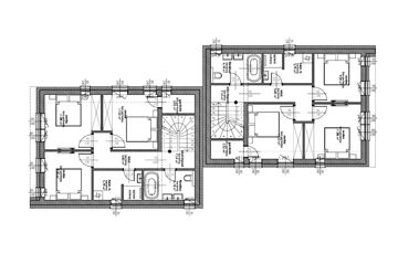 Az emeleti szint a privát lakófunkciókat szolgálja, három külön nyíló szobával, fürdőszobával, gardróbbal, közlekedőkkel és háztartási helyiséggel. A kialakítás kényelmes, funkcionális és hosszú távon is jól használható.