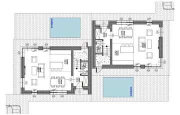 - közös fal nélküli ikerházkialakítás, saját, külön bejárat mindkét lakóegységhez