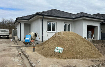 Nyíregyháza, Oros eladó új építésű iker családi ház mely jelenleg is építés alatt áll a házak 111 és 118 m2-s, három különnyíló szoba, nappali+étkező+konyha egy térben, fürdő szoba, külön wc, zuhany+wc, mosókonyha, gardrob, továbbá 11 és 13 m2-s nyitott és pergolás burkolt terasz, 17 m2-s garázs melynek automata kapubejárata lesz, fűtése hőszivattyú mely padlóra vezérelt, nyílászárók három réteg üvegezésű fehér műanyag. Az utcafronti ingatlan 300 m2-s telekkel rendelkezik a hátsó 750 m2-s telket birtokolhat, szép kerítés, térkövezett járda és garázs felhajtó tartozik mindkettőhöz. A házak porotherm 30-s téglából épülnek, belső válaszfal 10-s tégla, falak belülről kartonozva, külső nikecel szigetelés 15 cm-s, mennyezet fémvázra erősített tűzálló gipszkarton rajta pára áteresztő fólia és 30 cm-s kőzetgyapot szigetelés, fafödémes a tető beton cseréppel fedve alatta hővédő fólia, padló burkolat laminált lapok és járólap. A szaniterek a belső ajtó és a burkolat még kiválasztható. Birtokba adás 2026 tavasz vége! Minden kedvezmény igényelhető!