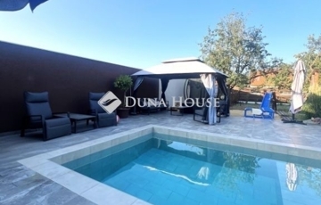 MEDENCÉS CSALÁDI HÁZ!!! Pécs gyárvárosi részén eladó egy pár éve teljeskörűen felújított, nettó 100 nm alapterületű, 2 szintes, jelenleg amerikai konyha-nappali+ 4 szoba elosztású, sok extrával felszerelt, gáz kazánnal fűtött, klímás, tégla családi ház, épített medencével, nyári konyhával, 160 nm-es műhely garázzsal, alagsori tárolókkal, duplagarázzsal, térkövezett, udvari beálókkal, 1000 nm-es parkosított telken.Az ingatlant korszerűsítették és a következő extrákkal szerelték fel:- Új Medence 3,6x5,8 méretben- Homlokzaton 10 cm grafitos szigetelés- 22 m-es téglával körberakott, dupla aknás, elektromos bekötéssel rendelkező kút- Hörmann garázskapuk + motorok- 2 db hűtő-fűtő klíma- Gáz cirkó + vegyes tüzelésű & elektromos kandalló - padlófűtés és radiátorok- Ipari 8 cm-es térkő, 160 m2- új elektromos hálózat és vízvezetékek- Vízálló padló burkolatok- Kamera és riasztó rendszer- épített kerítés- Tető 2,5 éve új lécezést és vízzárást kapottA teljes berendezés külön alku tárgyát képezi!Az ingatlan cég telephelynek is kiválóan alkalmas, a lakóház részén ügyféltér és irodák kialakíthatók, udvarán 160 nm térkövezett parkoló, 160 nm műhely és 2 állásos garázs is megtalálható!I.ár: 129,9M Ft