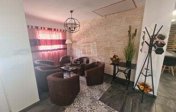 A bejárati ajtón belépve tárul elénk egy tágas konyha étkezővel, valamint kialakításra került egy kisebb társalgó rész is. A konyha két oldalán helyezkedik el a ház két nagyobb egysége, melynek stílusos berendezései azonnal megnyeri a tekintetet. Az ingatlanban megtalálható még egy kisebb szoba, továbbá kialakításra kerül 2 különálló wc egy nagyobb fürdőszoba + wc, illetve egy beépíthető szekrény melyben a mosókonyha kap helyet.
