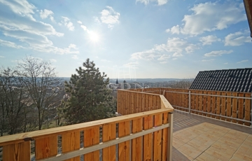 Az 54m2-es nappaliból gyönyörű panoráma látható a 15 m2-es terasz irányába. A 9,92 m2-es hálószoba is panorámás kilátással rendelkezik. További két szoba található ezen a szinten és egy igényes anyagokkal felújított fürdőszoba is.