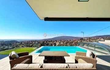 Exkluzív panorámás családi ház eladó Pécs MecsekoldalánPécs, Mecsekoldalon kínálunk megvételre kivételes adottságokkal rendelkező, újszerű állapotú családi házat. A gondosan megtervezett terek, a prémium anyaghasználat és a lenyűgöző körpanoráma tökéletes harmóniát alkotnak.Főbb jellemzők: 220 m² letisztult, elegáns lakótér 2087 m²-es, teljes intimitást biztosító telek 3 hálószoba, 2 fürdőszoba Világos, nagyvonalú belső terek, modern élettér-kialakítás 60 m²-es panorámás, részben fedett terasz 45 m²-es feszített víztükrű medence Privát szauna a teljes kikapcsolódásért Zavartalan körpanoráma Prémium műszaki tartalom: Energiahatékony hőszivattyús rendszer Wolf központi szellőztető rendszer Vízlágyító és automata öntözőrendszer Elektromos zsalúziák minden nyílászárón Riasztó- és kamerarendszer Magas szintű kivitelezés: 38-as PTH falazat, 10 cm-es hőszigeteléssel Modern alumínium nyílászárók Időtálló, elegáns mészkő homlokzat Prémium burkolatok: minőségi laminált parketta és mázas kerámia 40 m²-es garázs Hörmann kapuval Teljesen intim, zárt telek További értékek: Az ingatlan mindössze 5 éve épült, újszerű állapotban van Igény esetén teljes bútorzattal (megegyezés szerint) A vételár részét képezi egy kb. 700 m²-es, panorámás, részben közművesített telekrészEz az ingatlan ideális választás azok számára, akik kompromisszumok nélkül keresnek exkluzív otthont, páratlan környezetben.További információért kérem, keressen bizalommal!