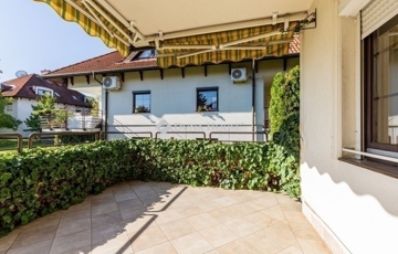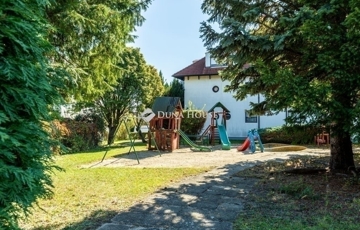 Az 1992-ben, magas minőségben épült 3 szintes ház egy lakóparkban található, melynek hatalmas, közös használatú, fákkal körbeölelt zöld kertje van, privát játszótérrel.