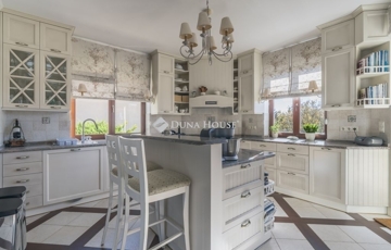 A ház 991 m2-es, déli irányba lankás, kissé lejtő építési telekre épült, beton sávalapra, a főfalak 30-as Porotherm blokktégla-fallal, monolit vasbeton tetőszerkezettel. A teljes dokumentáció, műszaki leírás rendelkezésre áll, a Tulajdonosok saját részre építtették, amely 2001-ben kapott használatbavételi engedélyt. A ház modernizálása azóta 2 ütemben is megvalósult, a teljes konyha, a gépek cseréjével a belső terek, ajtók, magas minőségű faborítására került sor, kifinomult enteriőrökkel, cottage stílusjegyeket képviselve. Jellemző rá a sok fa használata, a kárpitozott bútorok, szép textilek, függönyök mind a közösségi terekben, mind a lakó-szobákban.