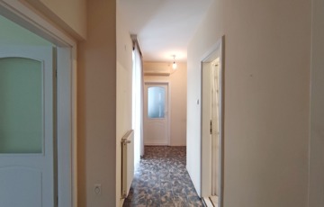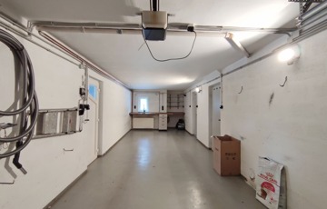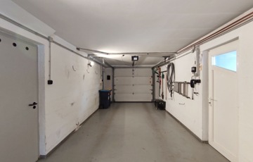 A családi házba a távirányítású elektromos kiskapun keresztül az előkerten áthaladva a több ponton záródó biztonsági bejárati ajtóhoz jutunk. A bejárati ajtóból balra nyílik a 34 nm garázs, ahol egymás mögé két személykocsival is be lehet parkolni. Innen balra nyílik egy 22,6 nm-es járólappal burkolt mosókonyha, ami mosógéppel felszerelt, itt található a gázkazán, ami az egész ház fűtéséről gondoskodik, továbbá a beépített házközponti porszívó rendszer is, ami biztosítja minden szinten a zajtalan pormentes takarítást. A garázs jobb oldalán nyílnak az 1,7 nm-es és 4,9 nm-es tárolók polcrendszerekkel. A garázsból jobbra kilépve a zárt lépcsőházból vezet fel a ház első szintjére. Belépve a bejárati ajtón a járólappal burkolt 7,6 nm-es előtér fogad minket, ahonnan jobbra a 10,6 nm-es ablakos, járólapos konyha nyílik, ami jelenleg nem bútorozott, ebből kifolyólag az új tulajdonos a saját ízlésére formálhatja. Innen kilépve az előtérben tovább haladva balra a fürdőszoba található, ami magában foglalja a toalettet is. Innen kilépve balra a 13 nm-es ablakos, fa parkettás hálószoba következik. Ezzel a szobával szemben nyílik a 24,13 nm-es, szintén fa parkettás, ablakos nappali szoba, ami a belső kertre néz. Ezen a szinten már a beépített házközponti porszívó rendszerrel lehet takarítani. A meleget radiátorok biztosítják, a felszerelt klíma nyáron kellemesebbé teszi a hőérzetet.