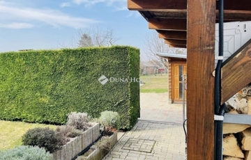 Udvar: telepített robotfűnyíró, privát kert Leylandi sövénnyel, privát játszótér, kerti sütő / grill rész, 10 m² faház, fatároló, finn szauna és jakuzzi, 10 m3-es ciszterna öntözésre gépesítve, gyümölcsfák.