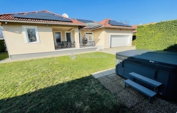 Modern családi ház PécsÚjhegyen napelemmel és dupla garázzsalPécs Újhegy csendes részén, a Barázda utcában eladó egy 2010-ben épült, egyszintes családi ház, amely ideális választás lehet családok számára.164 m² összterület 132 m² lakótér 32 m² kétállásos garázsHelyiségek: amerikai konyhás nappali étkezővel 3 hálószoba gardróbszoba 2 fürdőszoba + vendég WC kamra és háztartási helyiség 20 m² fedett teraszFőbb műszaki jellemzők:Viessmann gázkazánpadlófűtés és radiátorvízteres kandallóHoneywell helyiségenként szabályozható fűtés5,2 kW klíma3x25 Amper 7 kW napelem rendszer szaldó elszámolással 2030.12.31-igExtrák: elektromos alumínium redőnyök elektromos garázskapu és kertkapu riasztórendszer és kamerarendszer vízlágyítóUdvar: * telepített robotfűnyíró* privát kert Leylandi sövénnyel* privát játszótér* kerti sütő / grill rész* 10 m² faház* fatároló* finn szauna és jakuzzi* 10m3-es ciszterna gépesítve öntözésre* gyümölcsfákNyugodt, családi házas környezet, tágas és világos terekkel.Minden adott, hogy ez legyen az új, komfortos otthona.Érdeklődés esetén keressen bizalommal. Tekintsük meg együtt, hogy személyesen is meggyőződhessen, ez amit eddig keresett!