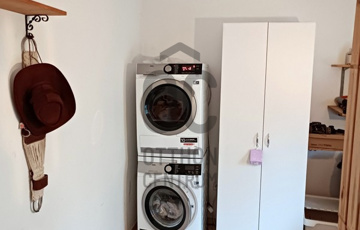 A hangulatos és funkcionális konyha mellet a házban egy kis kamra helyiség is található, ami szintén emeli a konfort érzetet.