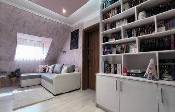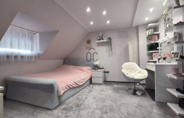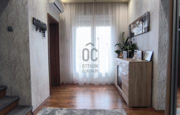 A házban 5 tágas szoba található, amelyek világosak és barátságosak, emellett két modern fürdőszoba is rendelkezésre áll, ami a nagycsaládosok kényelmét szolgálja. A konyha és az étkező egy légtérben van, így családi és baráti összejövetelekre is kiválóan alkalmas. 2 szobához gardrób helyiség lett kialakítva, ami a hölgyek álmát valósítja meg. Az egész ingatlan az igényességet és a harmóniát árasztja, modern, fiatalos színvilággal. Korszerű energetikai berendezések, 7,5 KW-os napelem és a hozzá tartozó tárolónak, a hőszigetelésnek és köztes elhelyezkedésének köszönhetően alacsony a fenntartási költsége. A 30m2-es garázs akár 2 autó beállását is lehetővé teszi az elektromos kapukon keresztül. A házban a riasztó és-kamera rendszer is ki lett építve.