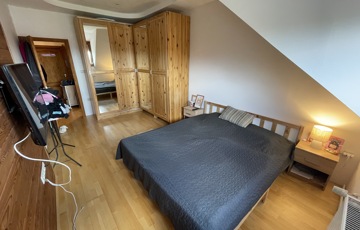 A felső szinten 4 kényelmes hálószoba és egy fürdőszoba biztosítja a család minden tagjának a saját életteret. Az otthon melegéről új gázkazán gondoskodik radiátoros hőleadással, amelyet egy hangulatos cserépkályha egészít ki. Továbbá egy korszerű, 5 kW-os napelemrendszer hozzájárul az alacsony fenntartási költségekhez, míg a központi porszívó a mindennapi kényelmet növeli.