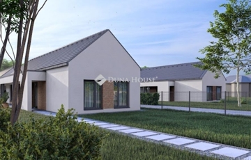 A település egyik rendezett utcájában kerülnek kialakításra az igényes megjelenésű, magas műszaki tartalommal bíró házak. Telkenként két lakóegység kerül kialakításra egymástól teljesen elválasztva, egyenként kizárólagos használatú kertekkel. A lakóépületek nettó alapterülete 90,39 nm, közéjük 1-1 autó elhelyezésre szolgáló, (25,4 m2) fedett autóbeálló kerül. A házak itt érnek össze, lakóhelyiség falai nem érintkeznek egymással, továbbá egy-egy felszíni gépkocsibeálló is kialakításra kerül. A házak mindegyikénél nyitott 20,4 nm alapterületű tornác jellegű fedett terasz szolgálja a teljes kényelmet, közvetlen kapcsolattal a nappaliból.