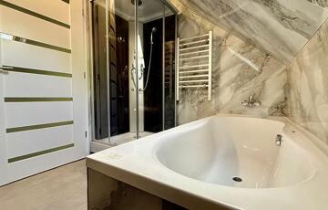 Tartozik a házhoz fedett kocsibeálló, Jacuzzi és kombinált finn szauna, valamint a napelemes rendszer és elektromos autó töltő rendszer előkészítése is megtörtént.
