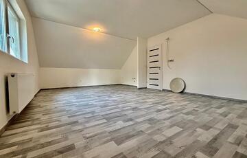 Az emeleten amerikaikonyhás nappali, 2 szoba, fürdő és egy gardrób istalálható.