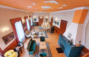 A földszint 4,2 méteres belmagassága különösen elegáns térélményt biztosít. A kandallóval díszített könyvtárterem, valamint a korhű berendezésekkel kialakított télikert valódi történelmi atmoszférát teremt, amely a vendégélmény szempontjából kiemelkedő, ugyanakkor reprezentatív magánhasználat esetén is páratlan.