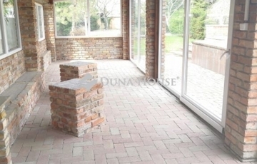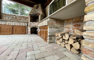A kinti időtöltés középpontja a ház mögött, belátástól mentes területen megépült, úszáshoz is elegendő méretű medence, melyhez egy az irányában teljes üvegfallal rendelkező kerti pavilon csatlakozik, ahol épített sütögető is megtalálható, akár nagyobb léptékű családi, baráti rendezvények megtartására is ideális.