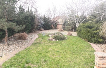 A házhoz tartozó 1678m2-es telekterület szépen rendezett. Az autóbeálláshoz, járdaként, illetve kinti időtöltéshez adott területek jó minőségű térkővel fedettek, emellett zöldterület, épített kert, sziklakert is megtalálható a kifejezetten tágas területen. Parkoláshoz 2 darab, 2 állásos garázs áll erndelkezésre, melyek természetesen távirányítható, elektromos kapuval nyithatóak, akárcsak a telekre bejáratot biztosító kapu. Mindkét garázsban elektromos autótöltéshez is rendelkezésre áll kiállás. Térkövezett területen ezen felül is megoldott további autók parkolása. Tároláshoz egy további tágas tárolóhelyyiség, és egy borospince jellegű, boltíves, száraz pince is rendelkezésre áll (nem a ház alatt található).