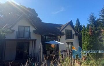 A fő ház egy két erkélyes kis kastély a nappaliban kandallóval, hatalmas teljes falat borító üvegezéssel, az emeletre széles, kanyarodó lépcsővel.