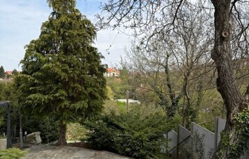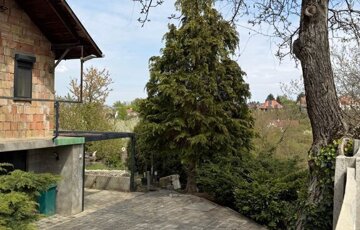 Kiváló elhelyezkedés és telekadottságok: A közbenső telek észak-déli tájolású, közepesen lejtős, teljes hosszban kerített utcafronttal és oldalhatárokkal. A személy- és autóbejáró az utcafrontról kialakított. A kert fás, bokros, gyepes növényzettel rendelkezik, amely kiváló alapot biztosít egy hangulatos, intim családi kert kialakításához. A földszint felújított, a pinceszint közepes jó állapotú, a tetőtér befejezetlen.