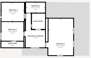 • 5 külön nyíló hálószoba
