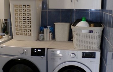 - Burkolatok: A fürdőszobában hidegburkolat, a többi helyiségben laminált padló. A