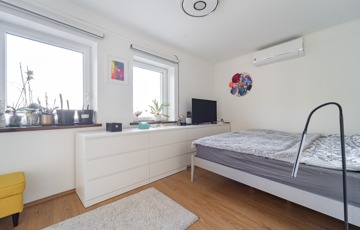 A Kocsis Sándor utca a Testvérhegy egyik legkedveltebb része: igazi zöldbe burkolózó, csendes, kivételesen nyugodt környezet. A ház nyeles telken fekszik, ezért az utcaforgalomból semmi sem hallatszik, teljes privát szférát biztosítva.