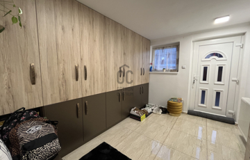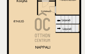 A földszinten található egy nagy méretű mosókonyha-háztartási helyiséggel, tágas-kényelmes előszoba, wc, illetve innen jutunk fel az emeleti lakótérbe.