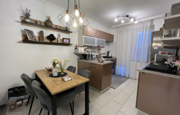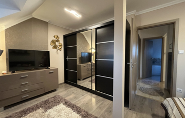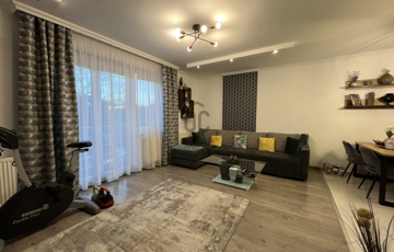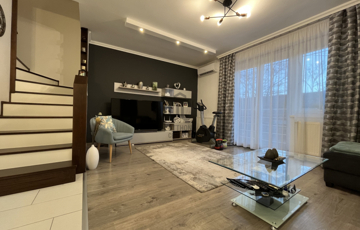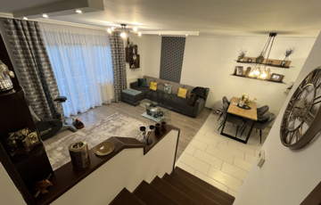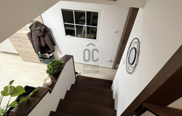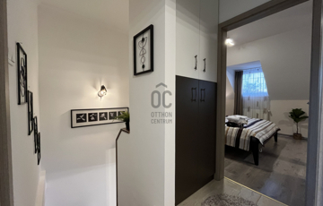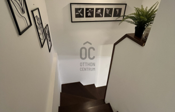Az ingatlan központi eleme a 33 m2-es, letisztult amerikai konyhás nappali-étkező, ahol az ápolt fa borítású lépcső, eleganciát sugároz.