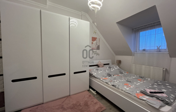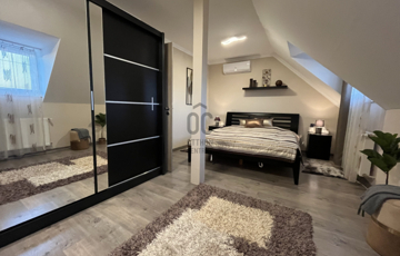 Az ingatlan 2007-ben épült, 108 m2-es térkövezett elő és hátsó kerttel, garázzsal, valamint külön bejáratú alsó szinttel rendelkezik, amely irodának, rendelőnek vagy üzleti célra is ideális lehet.