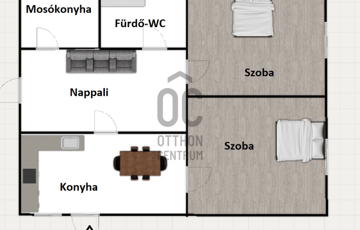 A 3 szoba mellett kialakításra került még egy konyha, egy mosókonyha és egy fürdő-wc is .