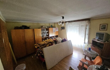 Lábodon, a csendes Petőfi utcában kínáljuk megvételre ezt a kisebb családi házat. Alapterülete 66 m2, ahol egy világos előtéren keresztül juthatunk a tágas étkezős konyhába. Innen nyílik az utcafront felé egy szintén nagyobb méretű szoba, hátra felé pedig a fürdő, illetve a két részből álló kamra. Az épület része még egy kívülről megközelíthető tároló is, ami igény szerint szobává alakítható. Fűteni jelenleg egy cserépkályhával lehet, ami a konyha és a szoba között áll. Igazán kellemes meleget ad, és van benne sütő is. A ház felújításra szorul, de a munkák elvégzését követően kedves otthon válhat belőle, de akár szálláshely kialakítására is érdemes gondolni. A telek 715 m2-es, sík. Pihenő kert, konyhakert, gyümölcsös szépen kialakítható benne, most is van egy sor szőlő és néhány fa. Melléképületek, köztük ólak, tárolók rendelkezésre állnak. A közművek közül a gáz az utcában van, a többi be van vezetve a házba. A ház a központtól kb. 500 m-re helyezkedik el. Lábod Kaposvártól 40, Nagyatádtól 8 km-re fekszik, a csokonyavisontai gyógyfürdő 15 perc autóútra van, de van a közelben több érdekesség és természetvédelmi terület, pl. a Petesmalmi vidrapark.