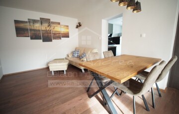 • Alsó szint (nettó 70 m²): teljeskörűen, modern stílusban felújított lakrész, jelenleg ismerősök lakják rövid időszakra.