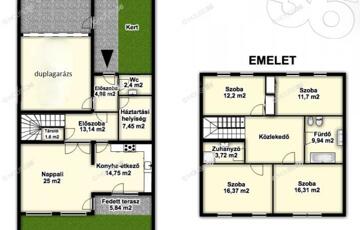 - duplagarázs + fedett autó beálló