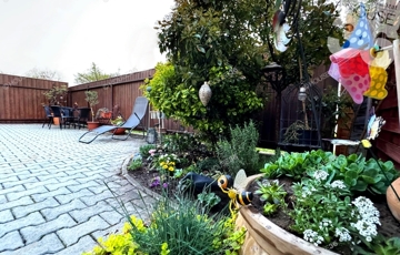 - térkövezett és parkosított kert