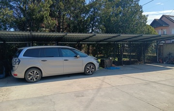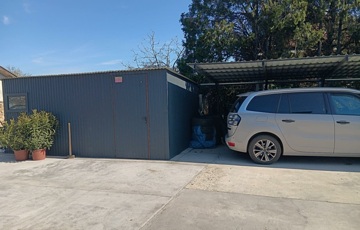 A telken 3 autó beállására alkalmas fedett kocsibeálló található, valamint szerszámtároló.