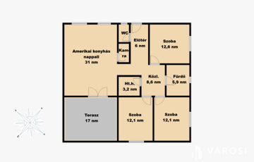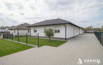 Nappali, konyha étkezővel 3 szoba, fürdőszoba, WC, háztartási helyiség és egy előszoba is található benne. Udvar felől nagy nyitott terasz is lehetőséget ad, a szabadban való pihenésre. A minimális energiaigényű kivitelezés, Porotherm falazat, 15 centiméteres külső szigetelés, 3 rétegű üvegezéssel ellátott nyílászárók és a legmodernebb hőszivattyús fűtés, A+++ -os energiahatékonysági besorolást és gazdaságos üzemeltetést biztosít.