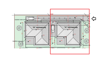 A ház egy másik házzal együtt, kerítéssel körbehatárolt, saját használatú telken fekszik, ami az építés befejezése után lesz majd igazán szép. Nem kicsi, hiszen 400 négyzetméteres terület jut egy-egy házhoz. Elég nagy, hogy kerti partikat rendezzenek rajta, vagy hogy elférjen egy medence is, de a család kedvenceinek is bőven jut hely.