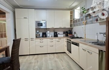 -fűtése gázcirkó és vegyes-tüzelésű kazánnal van megoldva és egy cserépkályha is be van építve a konyhában