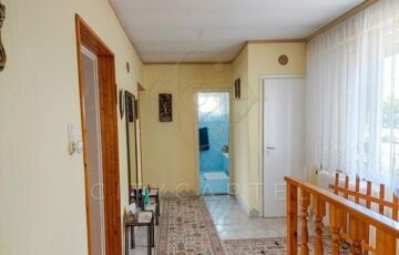 Egyedülállóan szép városi panorámával rendelkező családi házat kínálunk eladásra Dunaföldváron. Az egyedi hangulatú Duna-parti kisváros patinás, csendes utcájában, a centrumtól kissé távolabb álló, kétszintes ingatlan 1986-ban épült, s – a folyamatos karbantartásnak és korszerűsítésnek köszönhetően – jelenleg is a környék egyik gyöngyszemének mondható. A rendkívül masszív, száraz, szigetelt falak mintegy 151 nm-es lakóteret zárnak közre. Az épület földszintjén a tágas nappalihoz étkező, garázs, előtér, kazánház, mosdó és terasz kapcsolódik. Az emeleten 3 db rendkívül világos, kényelmes hálószoba, lakóelőtér, fürdő, WC, terasz és fedett erkély helyezkedik el. A családi ház fűtéséről gáz- és vegyes tüzelésű kazánok, valamint hűtő-fűtő légkondi gondoskodik. A közelmúltban felszerelt 8,1 Watt teljesítményű napelem rendszer a háztartási áram előállításában játszik jelentős szerepet. A lakóház mellett álló, felújított melléképület tároló helyiségeknek, baromfi ólaknak ad helyet. Az 1.935 nm-es telken parkosított udvar, pince, présház és gondozott hátsó kert található termő gyümölcsfákkal.